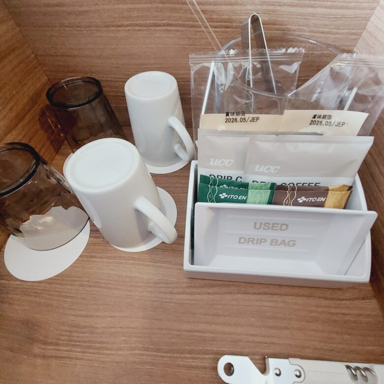 カフェコーナーはシンプルですが、コーヒー・緑茶・ほうじ茶が置いてありました(^^