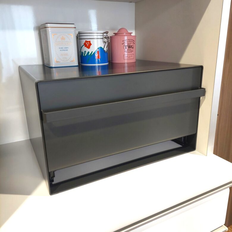 ブレッドケースは想像よりも収納量が多く、カップボード上がとてもスッキリしたので良いお買い物が出来ました。